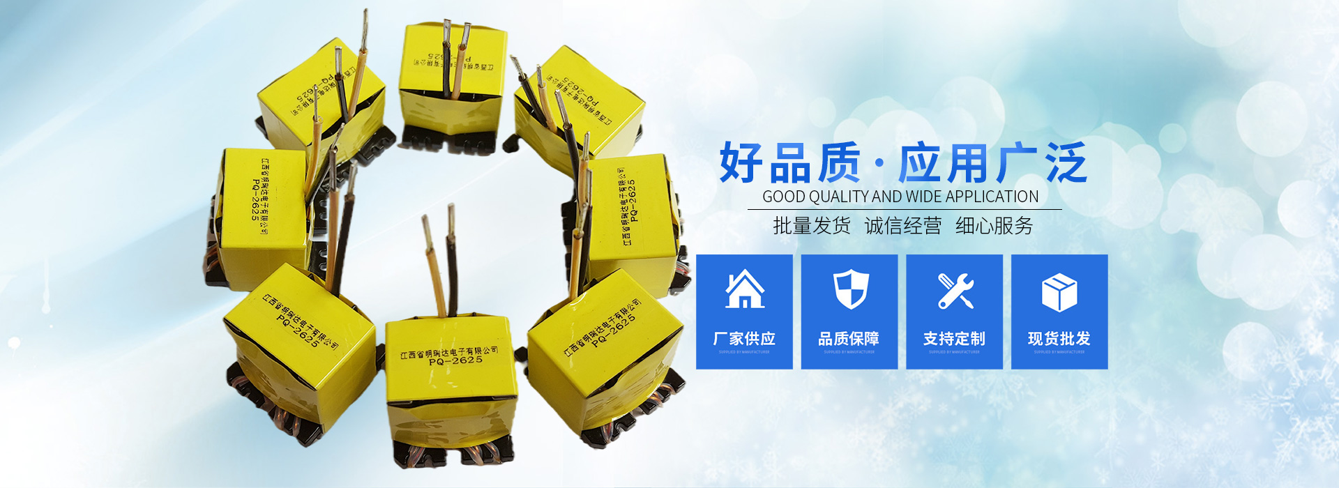 江西省明瑞達(dá)電子有限公司座落于江西省贛州市石城縣,是一家研發(fā)、生產(chǎn)、銷售各種變壓器廠商。生產(chǎn)銷售、技術(shù)服務(wù)、產(chǎn)品研發(fā)為一體的綜合性企業(yè),主要生產(chǎn)、銷售產(chǎn)品:變壓器(EE型、ER型、PQ型、RM型、POT型、UU型、DR型等產(chǎn)品),主要適用于:開關(guān)電源、適配器、機(jī)頂盒、液晶電視、空調(diào)、冰箱、LED、電腦、音箱、DVD、飲水機(jī)、電磁爐等各種家用電器及航空、醫(yī)療事業(yè)。
