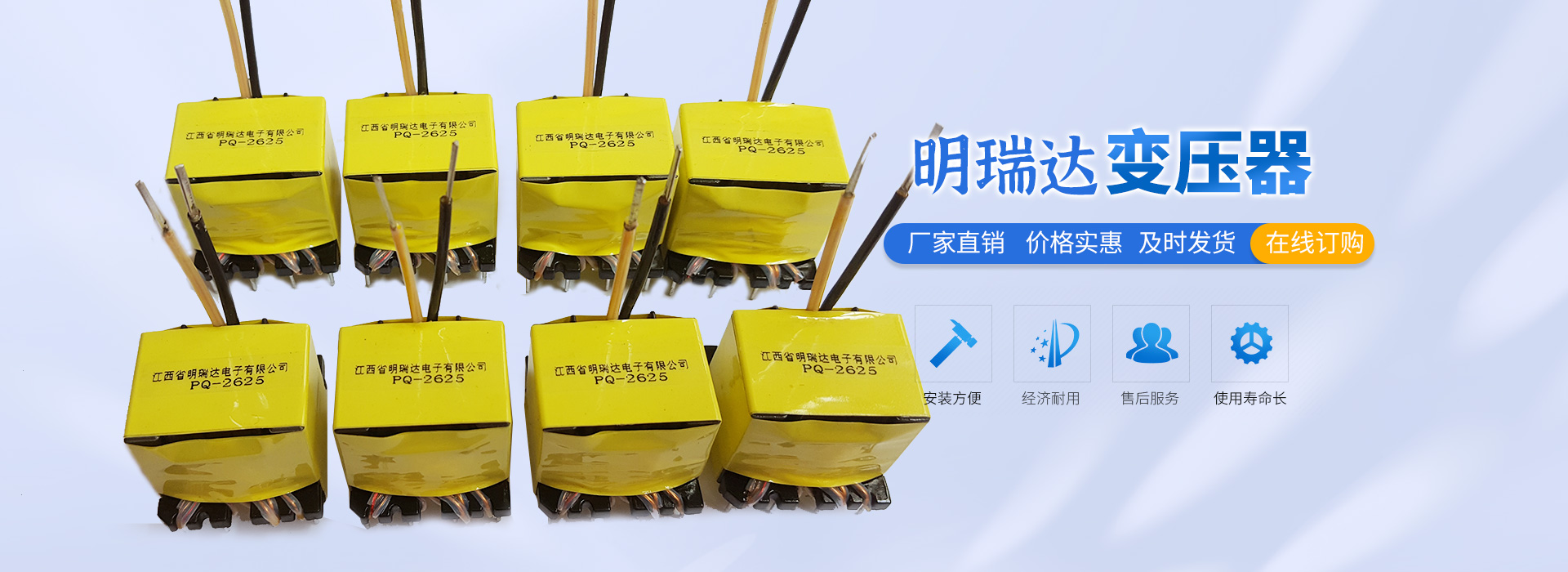 江西省明瑞達(dá)電子有限公司座落于江西省贛州市石城縣,是一家研發(fā)、生產(chǎn)、銷售各種變壓器廠商。生產(chǎn)銷售、技術(shù)服務(wù)、產(chǎn)品研發(fā)為一體的綜合性企業(yè),主要生產(chǎn)、銷售產(chǎn)品:變壓器(EE型、ER型、PQ型、RM型、POT型、UU型、DR型等產(chǎn)品),主要適用于:開關(guān)電源、適配器、機(jī)頂盒、液晶電視、空調(diào)、冰箱、LED、電腦、音箱、DVD、飲水機(jī)、電磁爐等各種家用電器及航空、醫(yī)療事業(yè)。